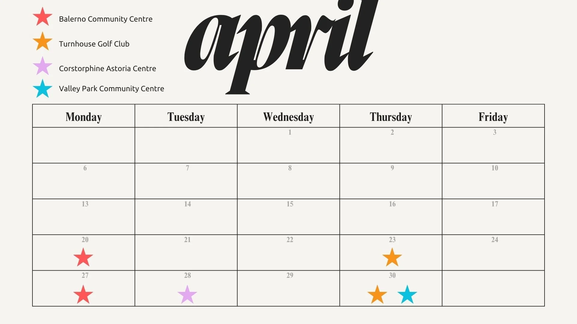 Monthly Class Diary
